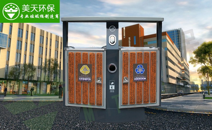 - 說明: MT-D02A鋼木垃圾桶,采用鍍鋅板和優質防腐木加工制作而成,桶身為加厚型鍍鋅板,金屬滅煙板,鋁合金投放口,適用于街道,公園,廣場等場合。